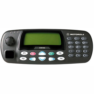 Автомобильная радиостанция Motorola GM380. Разработка отвечает военным стандартам прочности MIL-STD 810-C,D,E. Из особенностей стоит отметить: систему шумопонижения X-Pand; функцию DTMF, которая позволяет совершать телефонные звонки; функцию отправки сигнала помощи заранее определенному пользователю; функцию «одинокий работник», которая включает аварийный режим, если пользователь не выходит на связь в положенное время; возможность использования устройства в обход ретранслятора, что позволяет расширить зону покрытия связи.